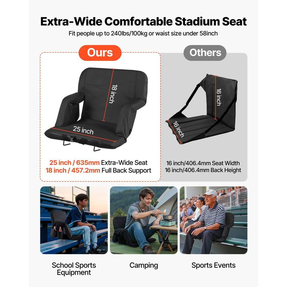 Sedia da Stadio Regolabile a 6 Angolazioni con Cuscino da 2,75 Pollici, Supporto per la Schiena e Braccioli, Poltrona Larga per Gradinate