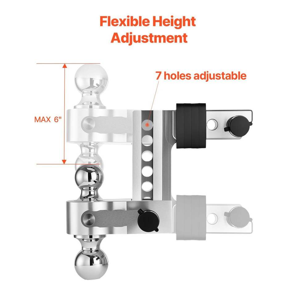 Gancio di traino regolabile da 6 pollici con attacco a tre sfere, per sfera di rimorchio da 1-7/8-2-5/16 pollici e ricevitore da 2 pollici