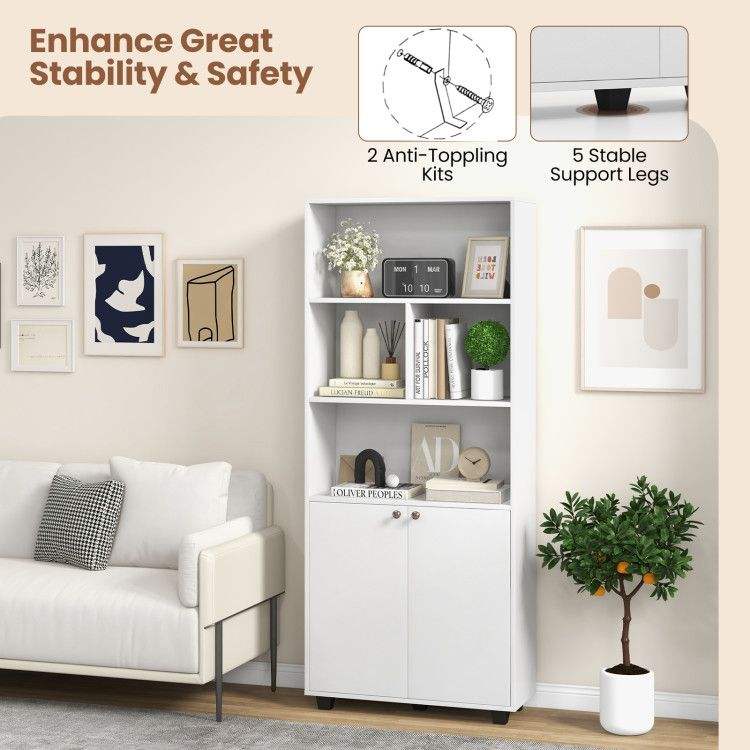 Libreria regolabile a doppia anta alta 66 pollici con cubi portaoggetti