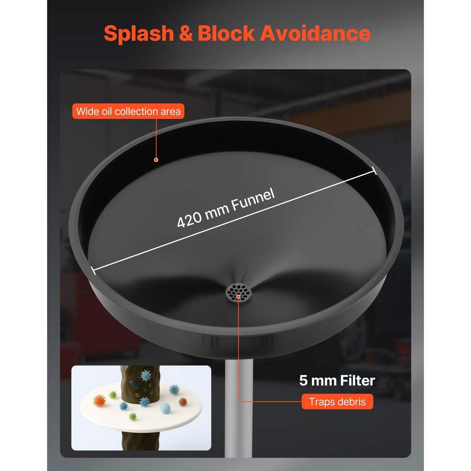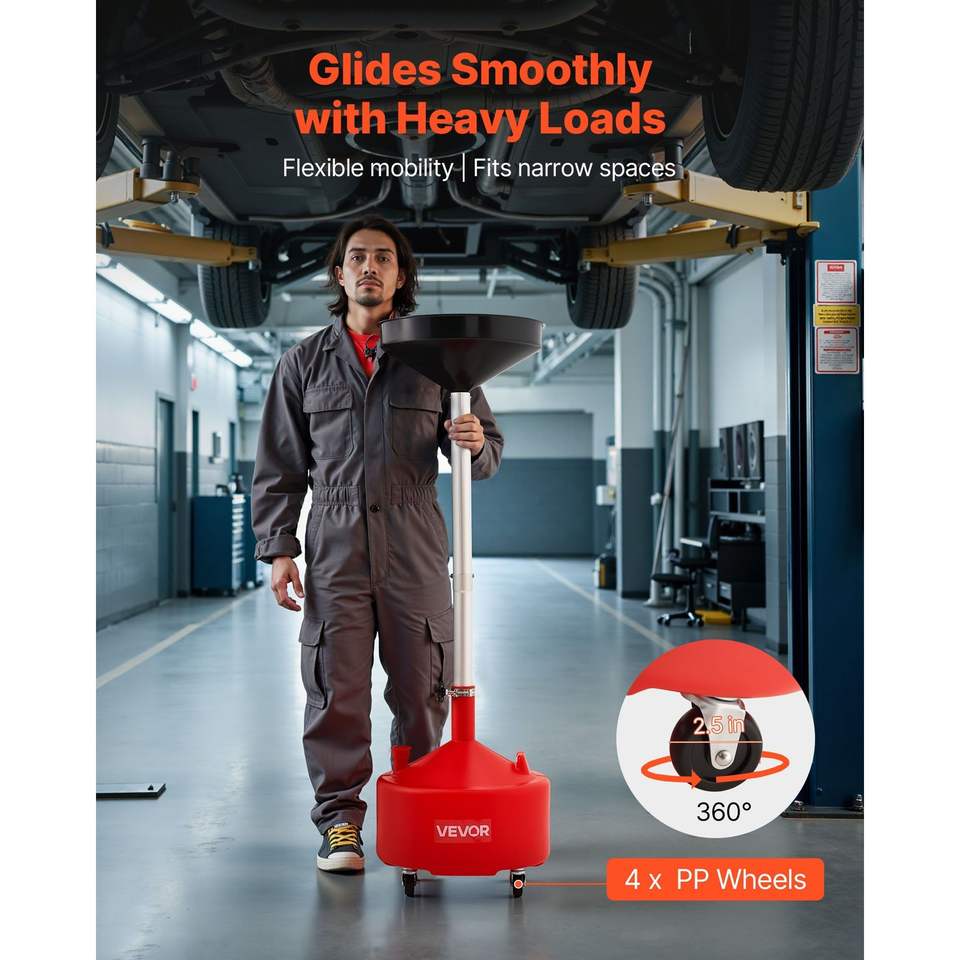 Serbatoio di scarico olio esausto regolabile da 8 galloni con ruote portatili, serbatoio industriale per lo scarico di fluidi per riparazioni auto con altezza imbuto regolabile