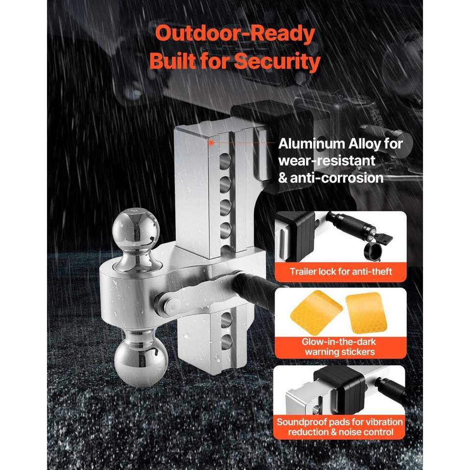 Gancio di traino regolabile da 8 pollici con attacco a tre sfere, ricevitore da 2,5 pollici per rimorchi, misure sfera 1-7/8, 2, 2-5/1 pollici
