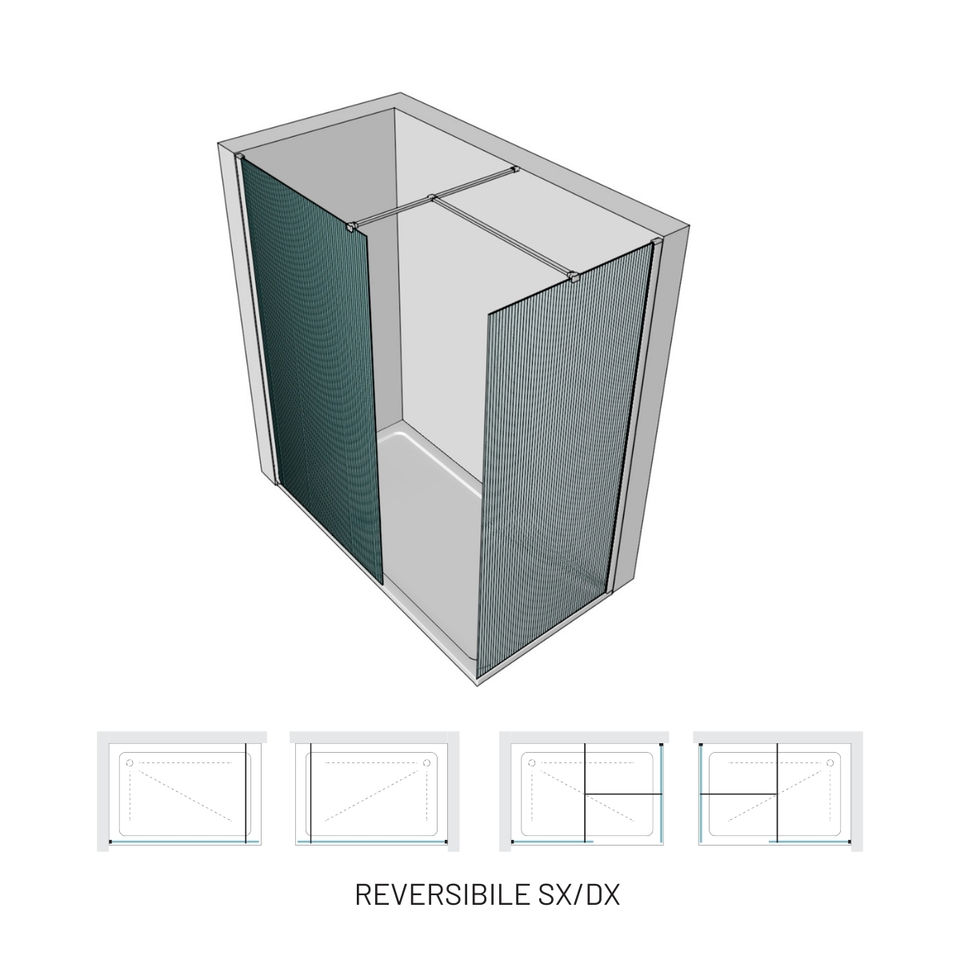Cabina doccia regolabile da 80 cm con schermo da bagno nero opaco effetto pieghettato da 8 mm confezionato