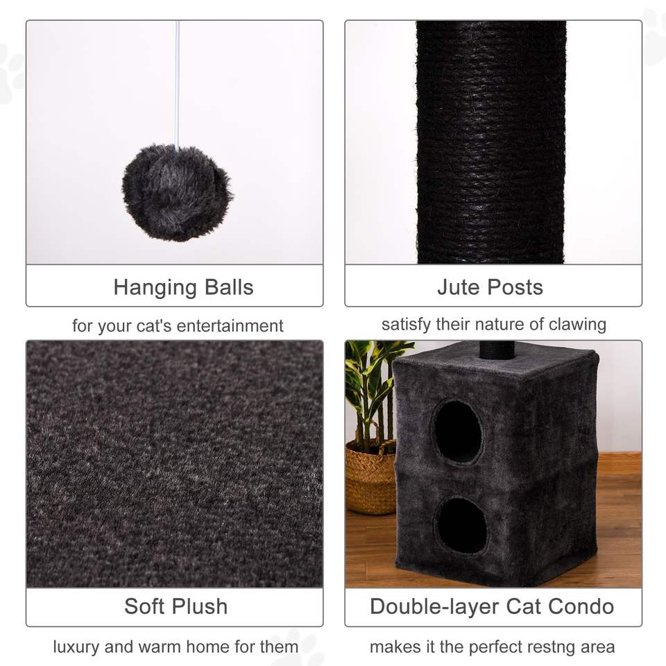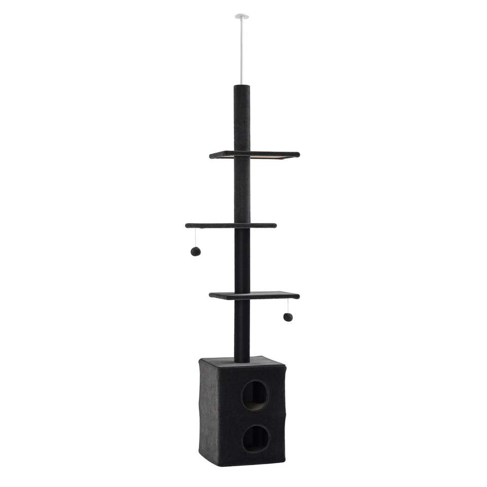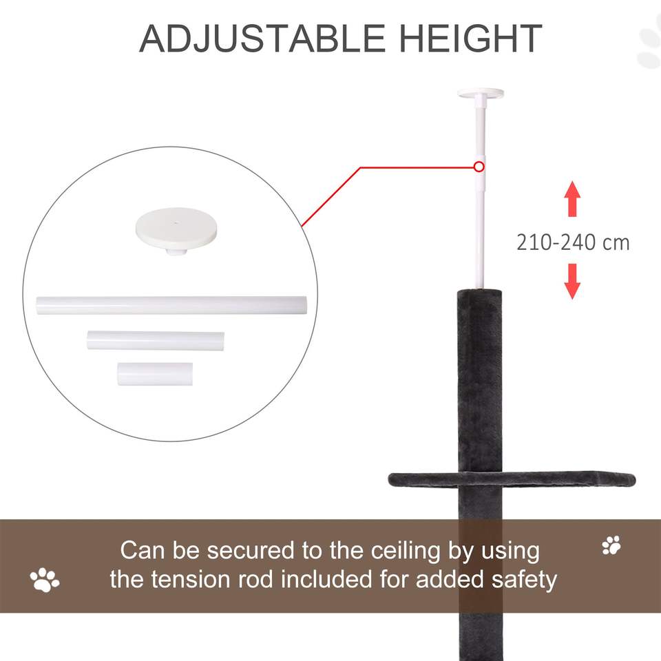 Albero per Gatti Regolabile da 86,5"-96,5" Grigio, da Pavimento a Soffitto, con Tiragraffi in Juta e Pallina Pendente