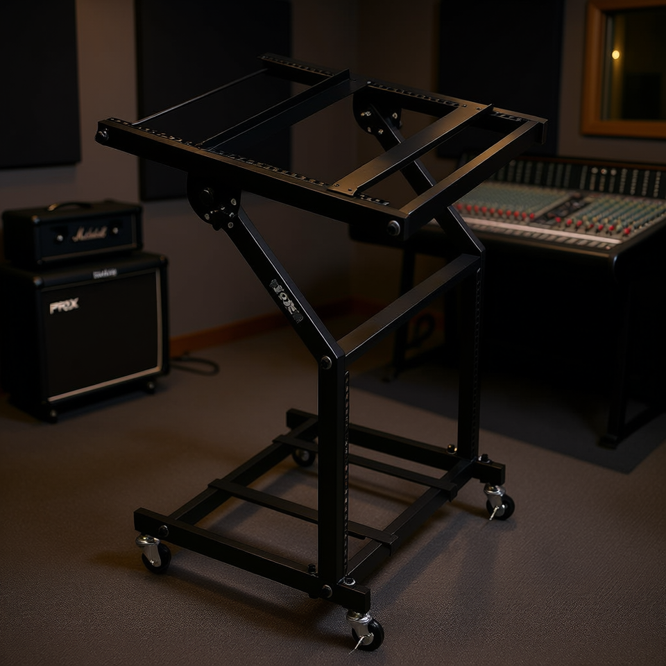 ProX 9U Rack Stand Rolling Cart With Wheels For Audio Studio Equipment