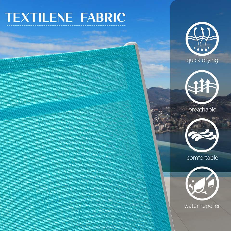 Lettino prendisole da esterno regolabile in alluminio da esterno in 3 pezzi con tavolino in metallo per tutte le stagioni per giardino sul prato