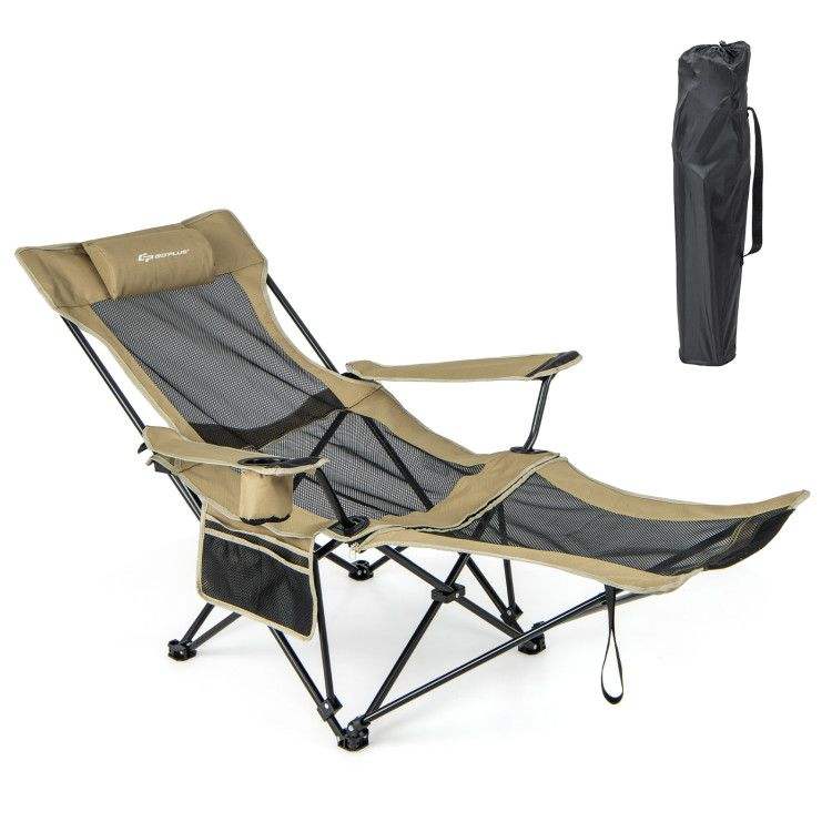 Sedia da Campeggio con Schienale Regolabile e Poggiapiedi Staccabile, Arredo da Campeggio