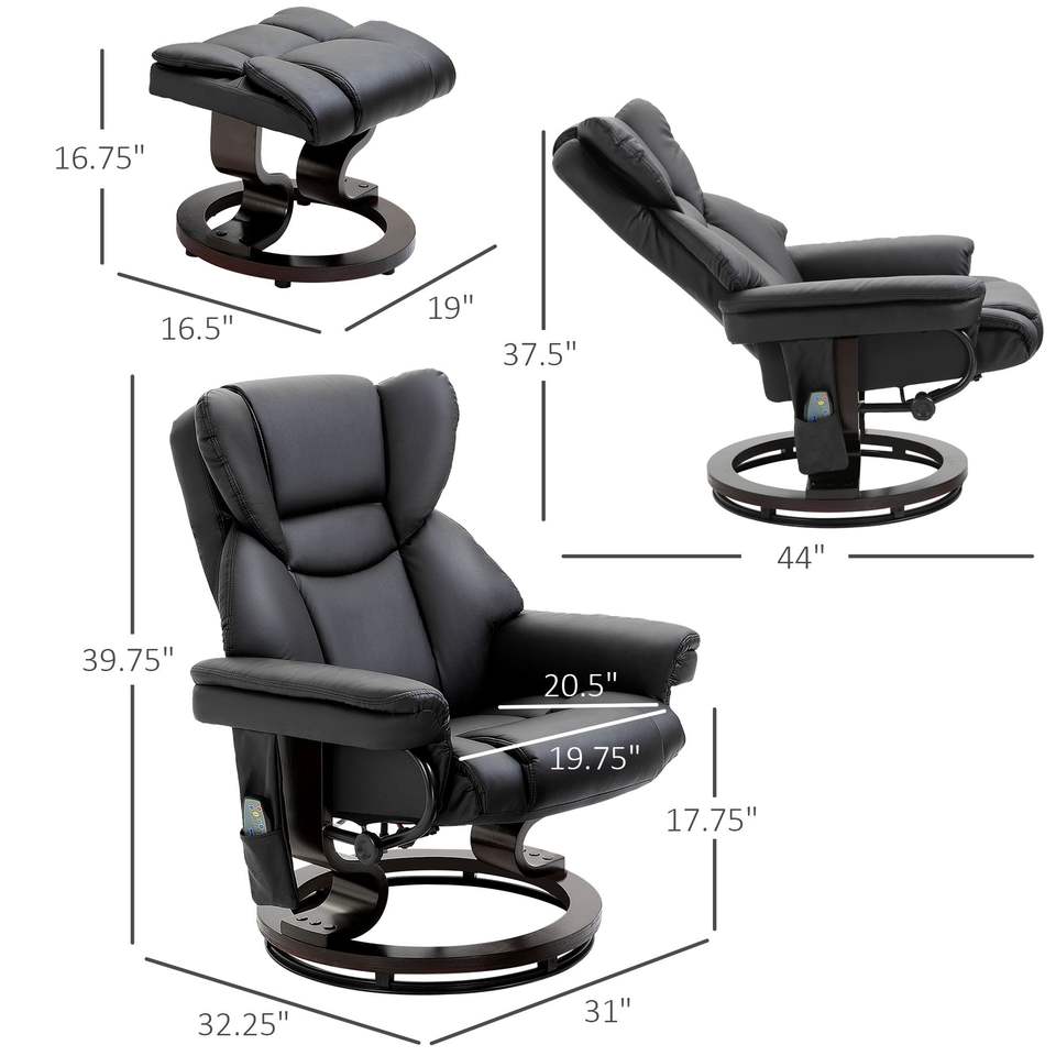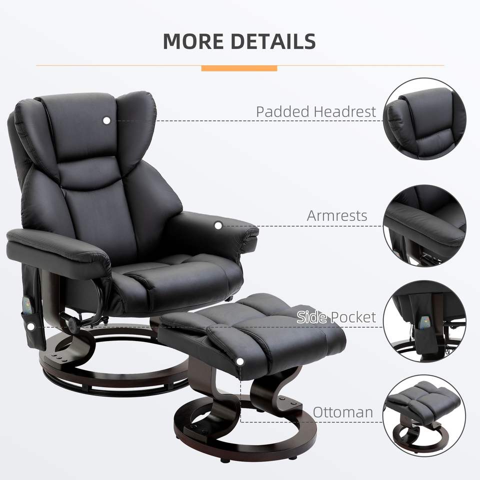 Poltrona Reclinabile con Schienale Regolabile, 10 Punti di Vibrazione e Poggiapiedi Nero con Telecomando