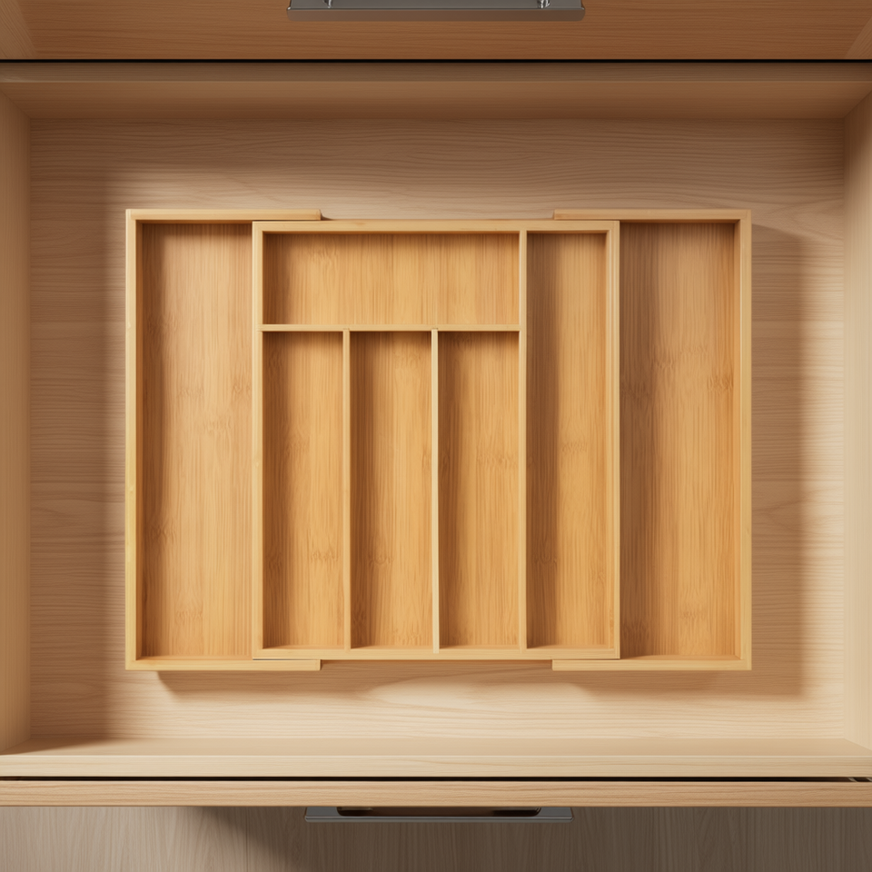 Organizzatore per Cassetti in Bambù Regolabile, Vassoio Espandibile a 5 Scomparti per Posate da Cucina, Design Minimalista in Legno Naturale