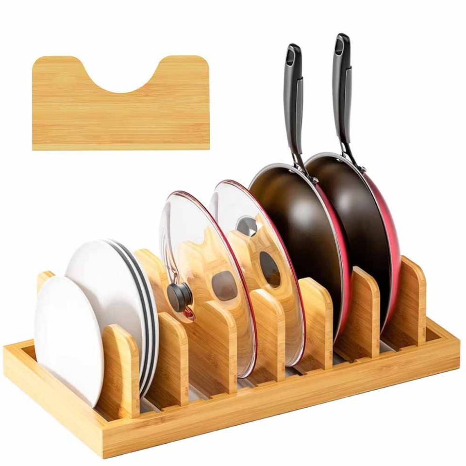 Portabicchieri in bambù regolabile porta cassetti portaoggetti per pentole padelle