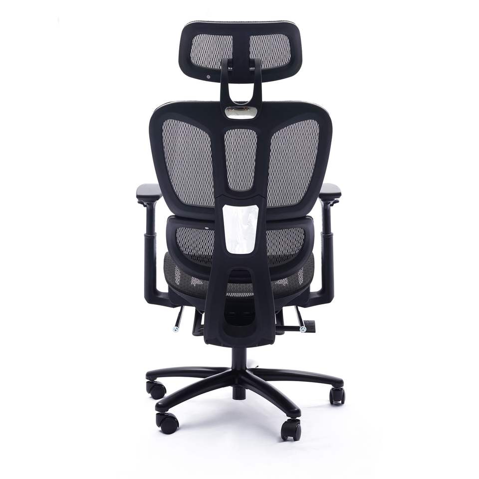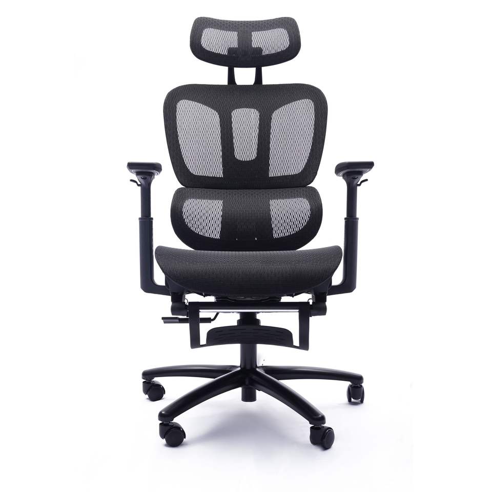 Sedia da Ufficio Regolabile in Rete Nera con Design Ergonomico, Poggiatesta e Poggiapiedi per Uso in Sala Conferenze/Ufficio Informatico