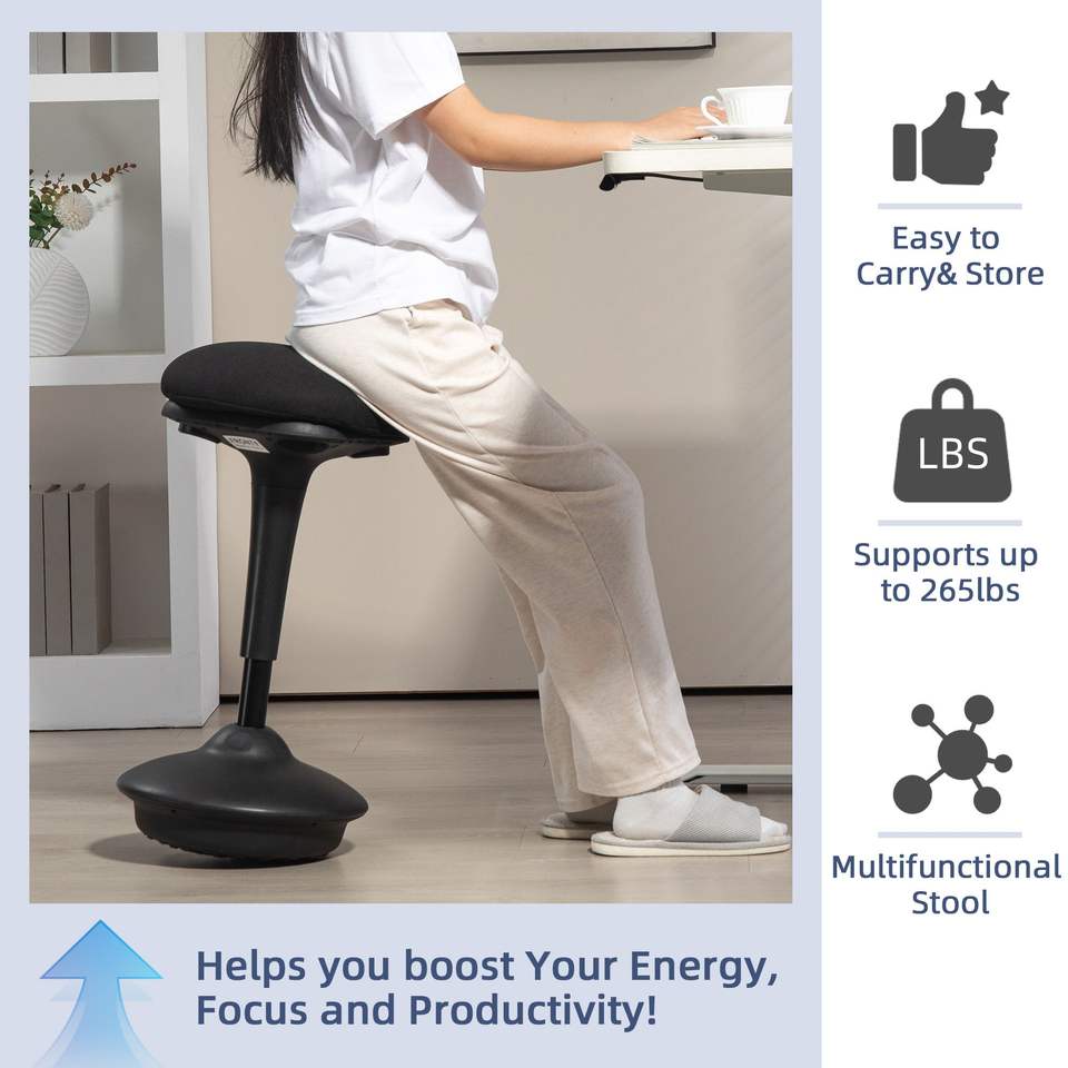 Sedia da Ufficio Nera Regolabile con Design Ergonomico Attivo, Sgabello Oscillante Senza Schienale con Movimento a Dondolo e Superficie Imbottita