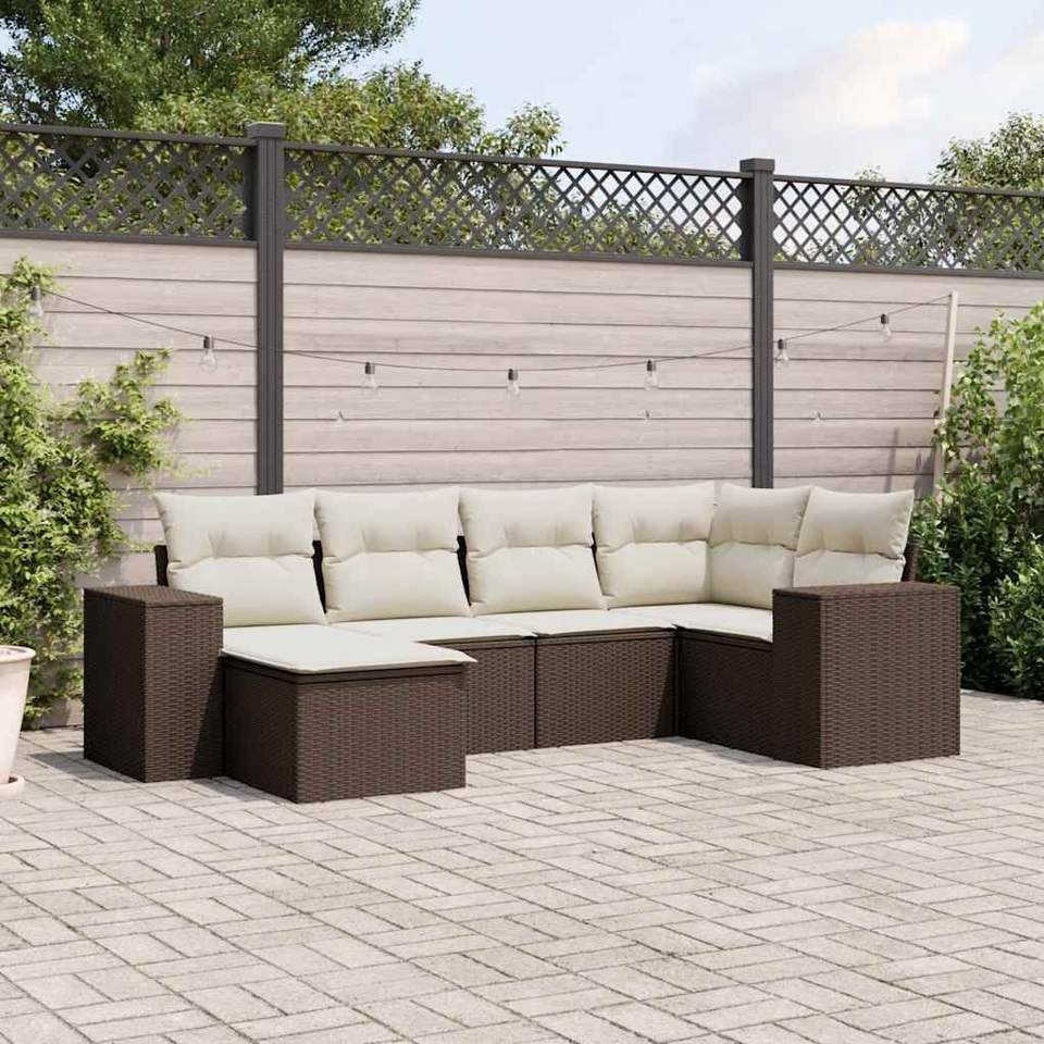 Set Divano da Giardino in Rattan PE Marrone 6 Posti con Piedini Regolabili Arredamento da Esterno Design Contemporaneo