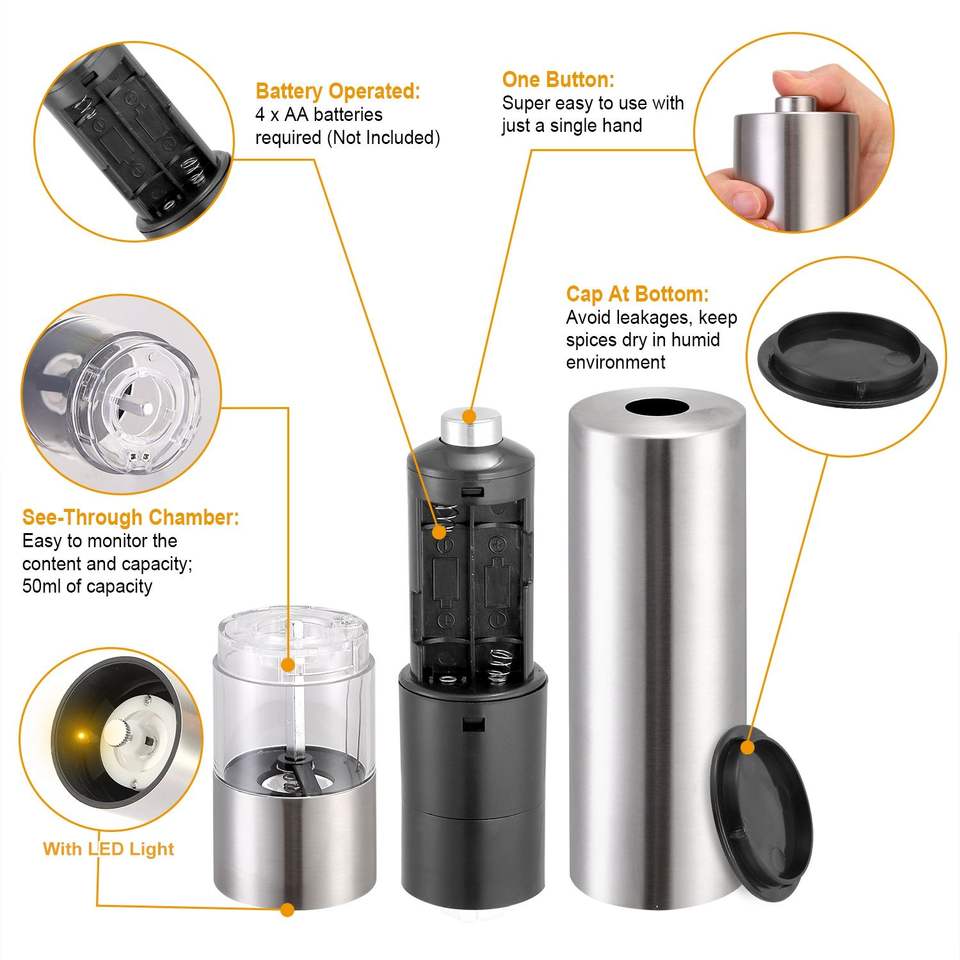 Macinino Elettrico per Sale e Pepe in Acciaio Inox con Regolazione della Macinatura e Luce Integrata