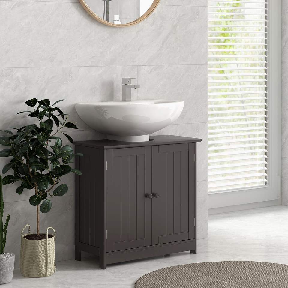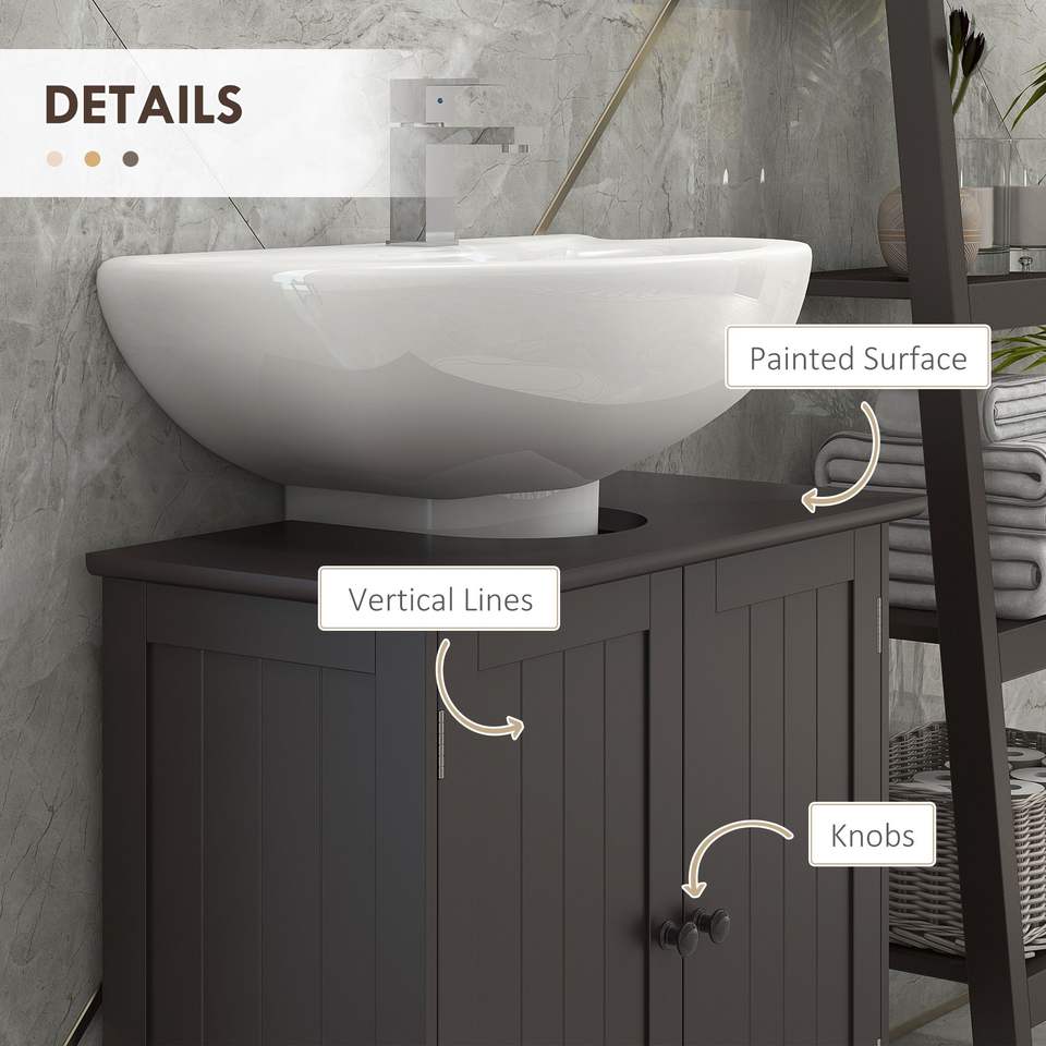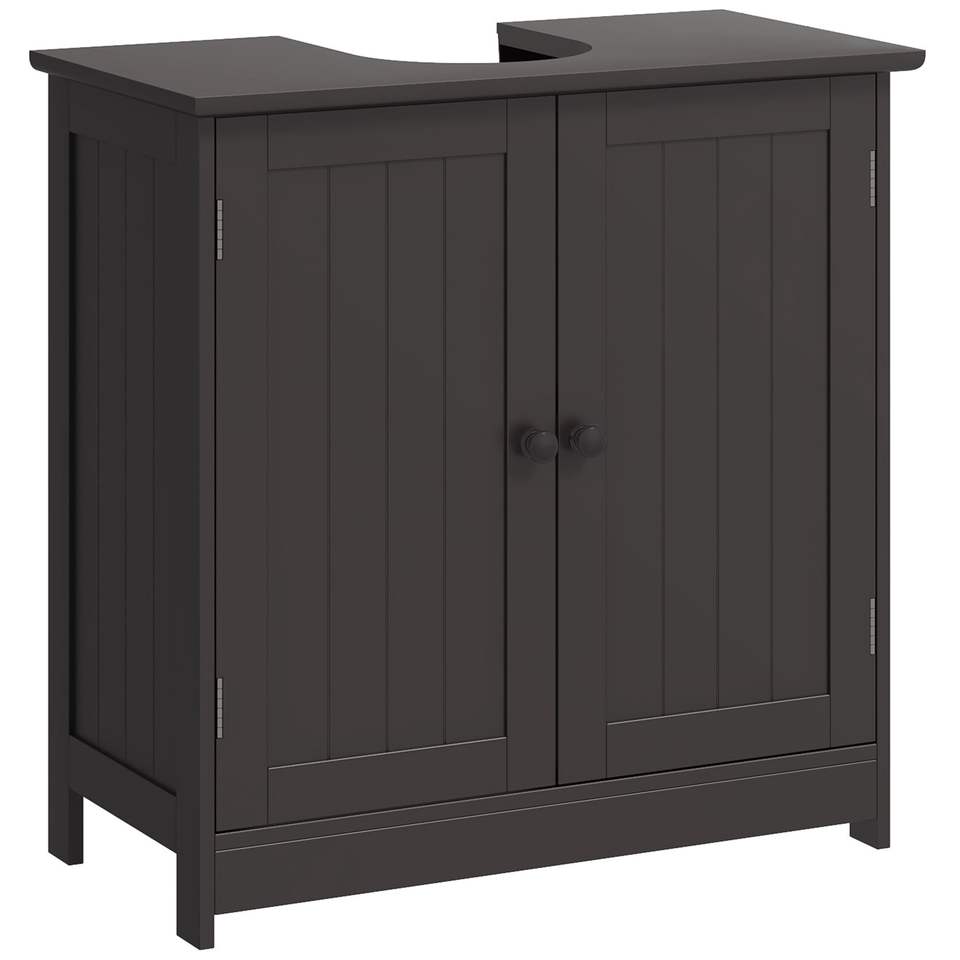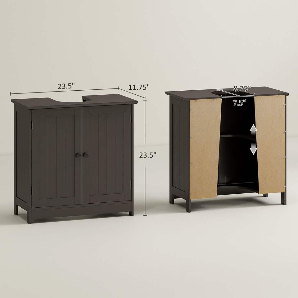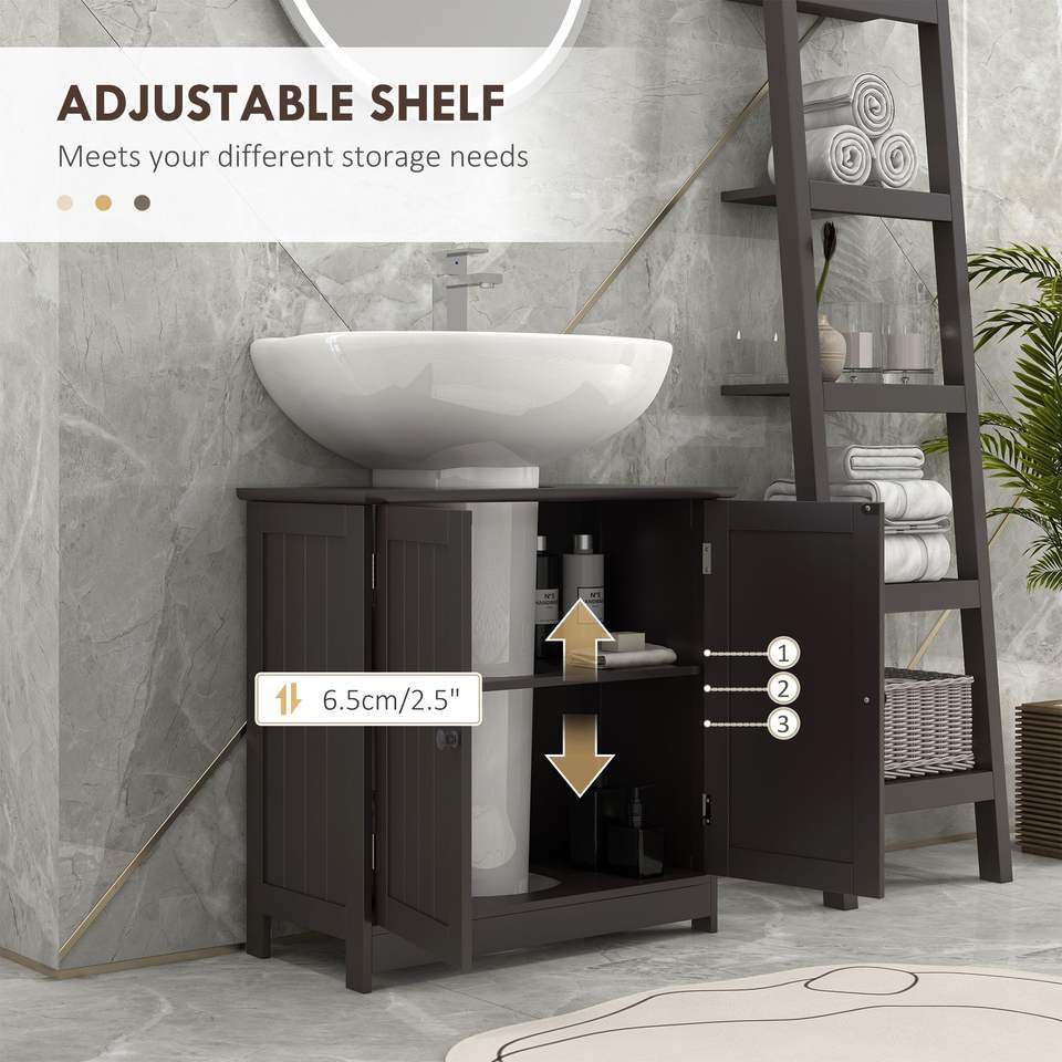 Mobiletto da Bagno Regolabile Color Caffè con 2 Ante, Organizzatore Sottolavabo