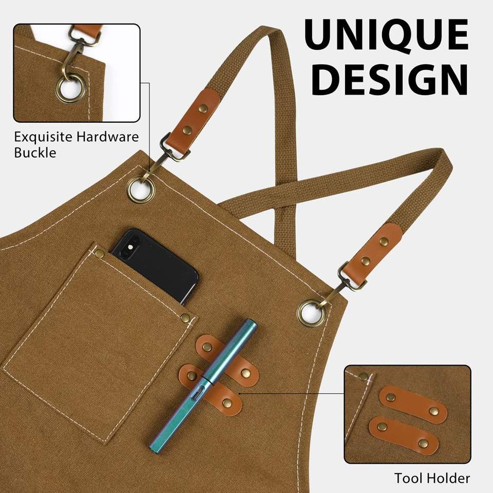 Grembiule da Lavoro Regolabile con Bretelle Incrociate, Resistente, per Uomini e Donne, in Tela di Cotone con Grandi Tasche, Taglie dalla M alla XXL