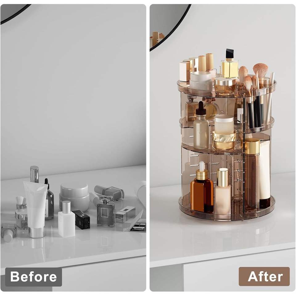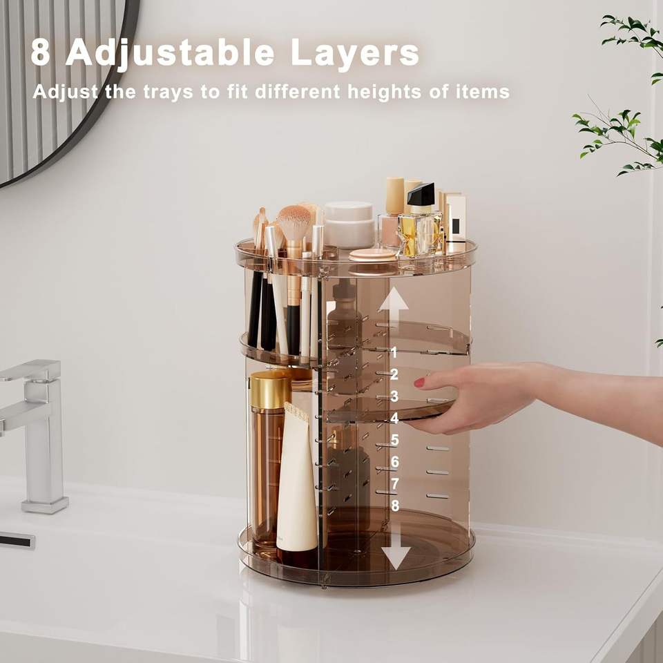 Organizzatore da banco regolabile fai-da-te con vassoi girevoli, espositore cosmetico per la conservazione di prodotti skincare e profumi