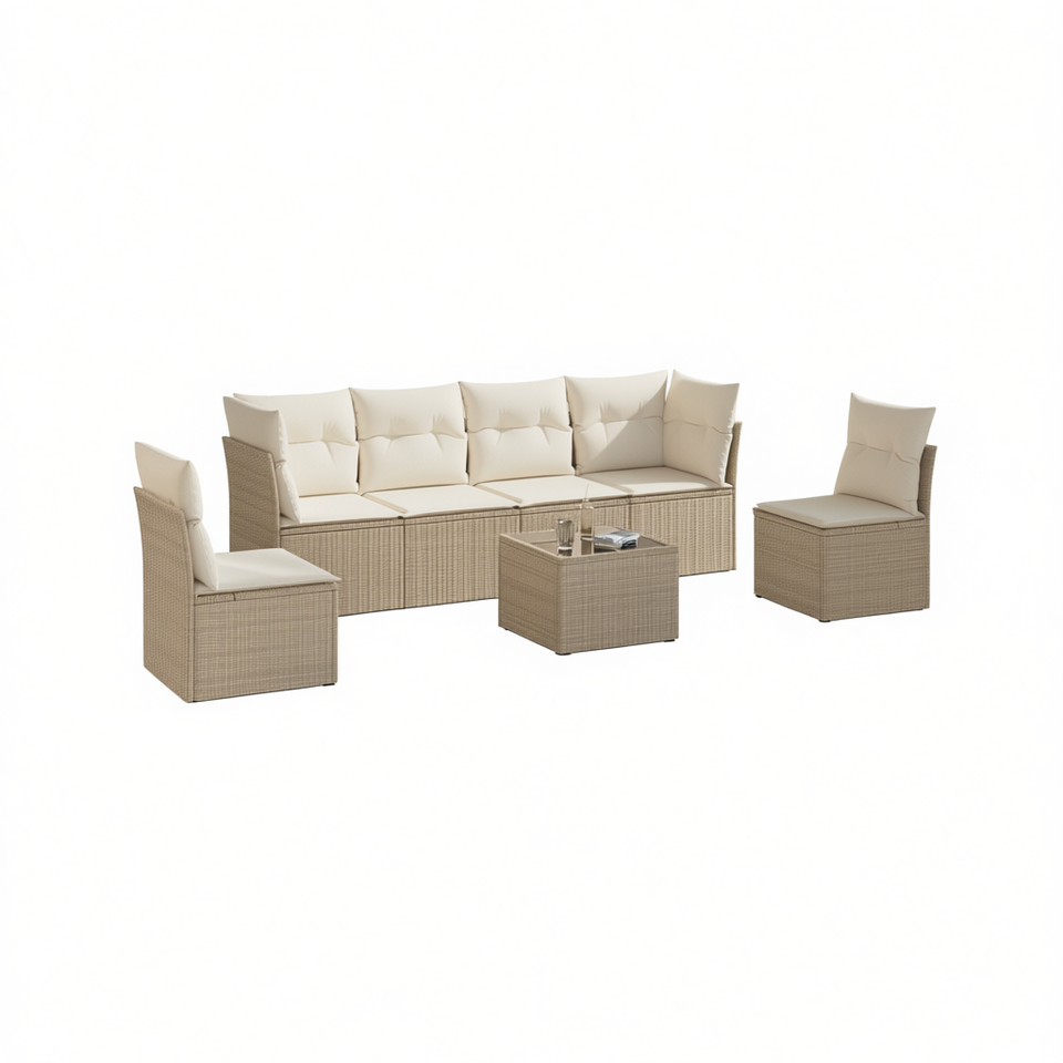 Set Divano da Giardino in Polyrattan Beige con Piedini Regolabili, Arredamento da Esterno dal Design Elegante