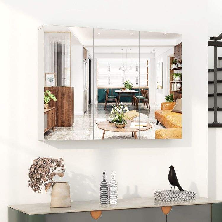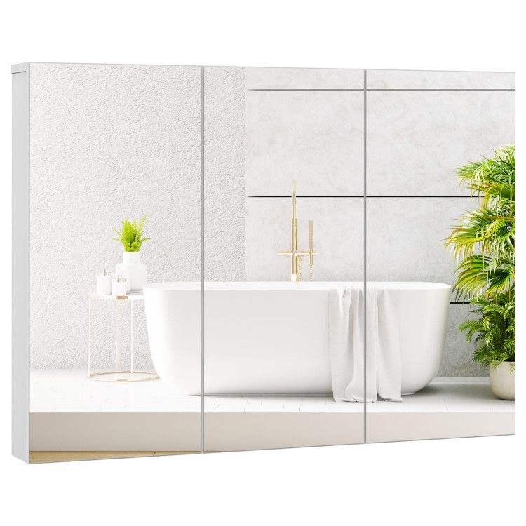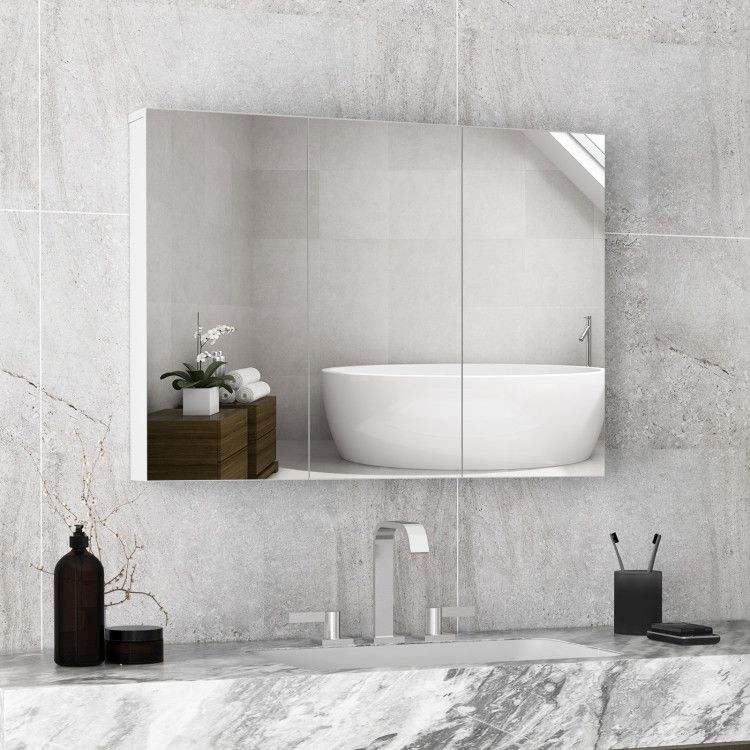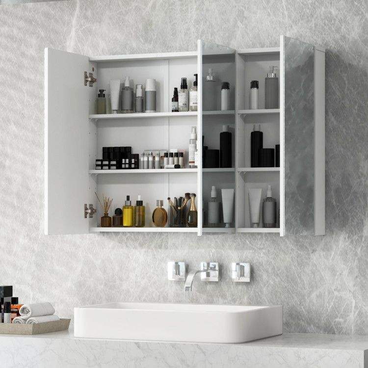 Armadietto a Specchio da Bagno Regolabile Senza Cornice con 3 Ante e Ripiani