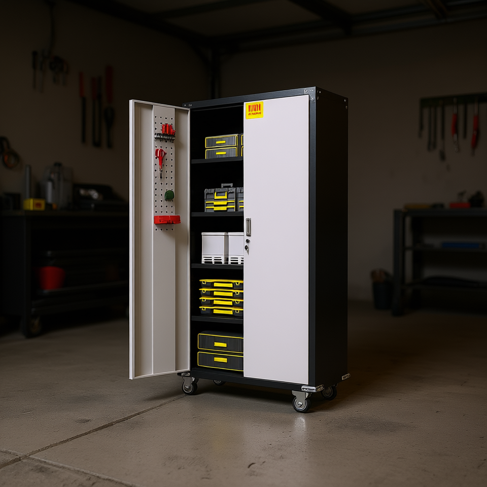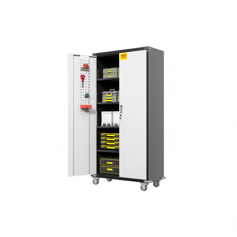 Tool Cabinet With Locking Doors 4 Shelves Pegboard Industrial Garage Storage