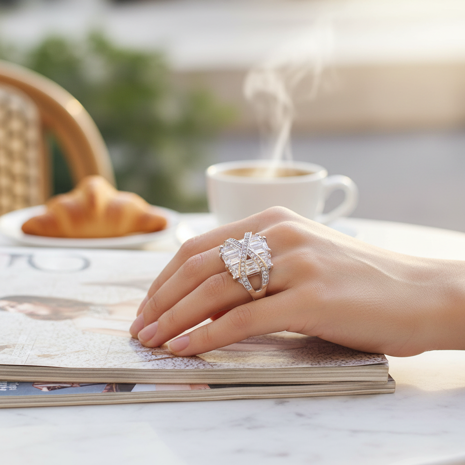 Adjustable Gold-Plated Finger Jewelry Clear Stone CZ Cluster Rings Fashionable Casual Style Inlay with Stretch Design