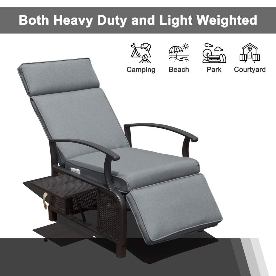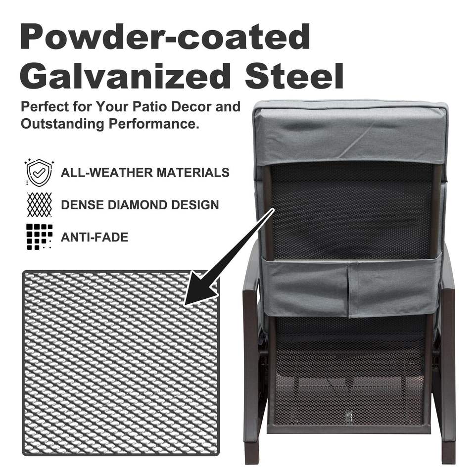Poltrona reclinabile con Patio grigio regolabile da 6.8 ''cuscini rimovibili in metallo tavolo da salotto da esterno Push Back angolo regolabile
