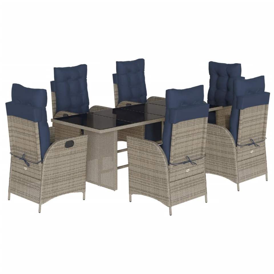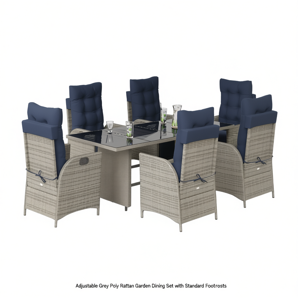 Set da Pranzo da Giardino Regolabile in Polyrattan Grigio con Poggiapiedi Standard, 6 Posti, Arredamento da Esterno