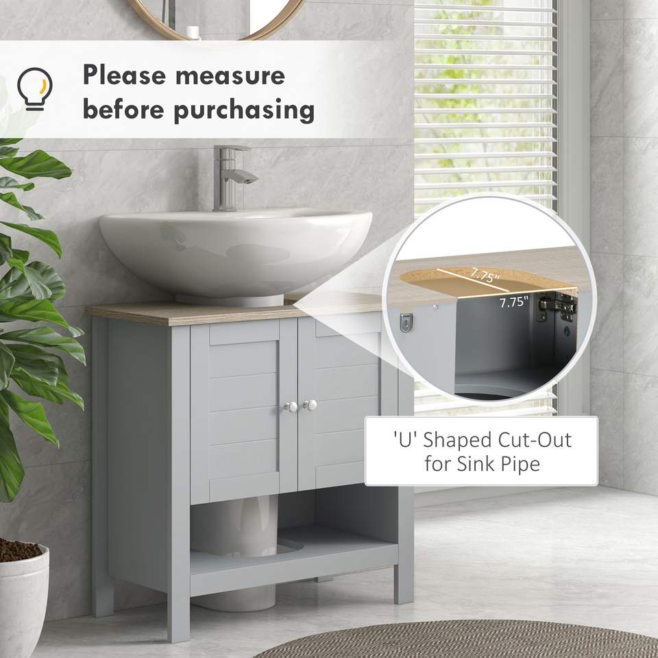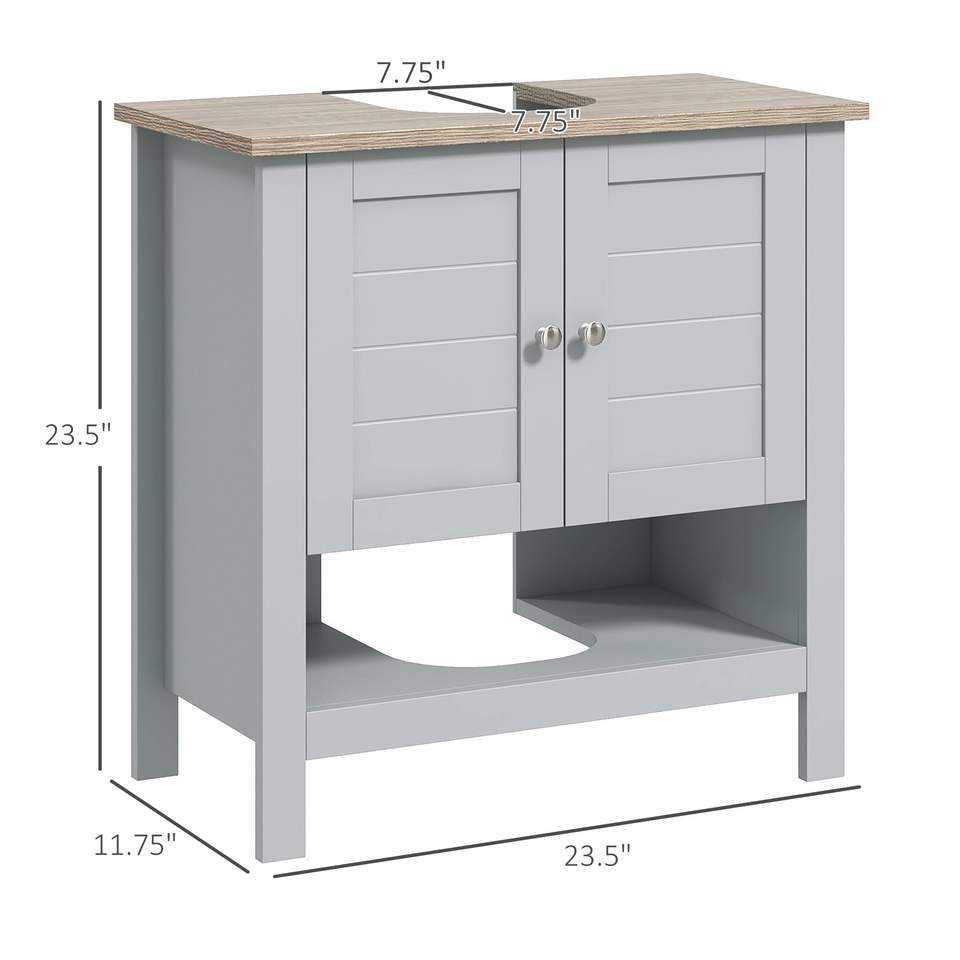 Mobile Bagno Sottolavabo Grigio Regolabile Prefabbricato con Design a Piedistallo e Ripiano per Spazi Ristretti