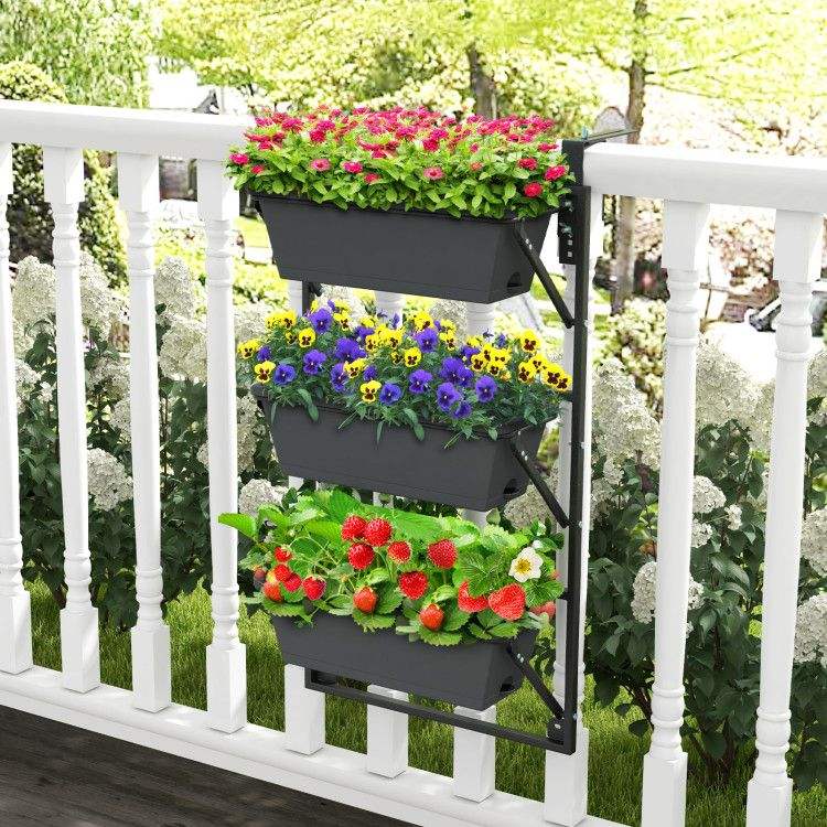 Fioriera Verticale Regolabile da Appendere a Parete con Ganci Staccabili, Cesti e Accessori
