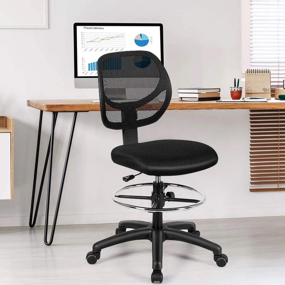 Sedia da Ufficio Ergonomica con Schienale Medio in Rete, Altezza Regolabile, 1 Pezzo