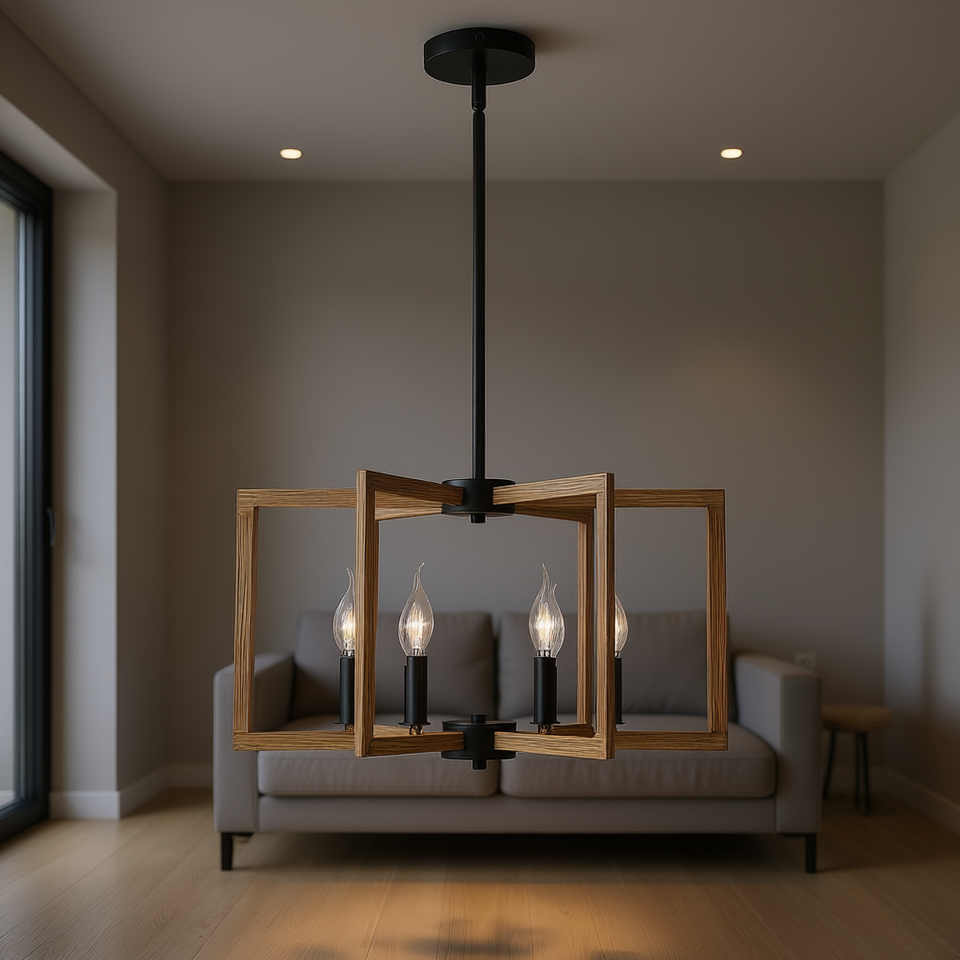Lampadario Industriale Moderno in Metallo a 6 Luci, Altezza Regolabile, Lampada a Sospensione Rettangolare Nera per Soffitto, LED Bianco Caldo
