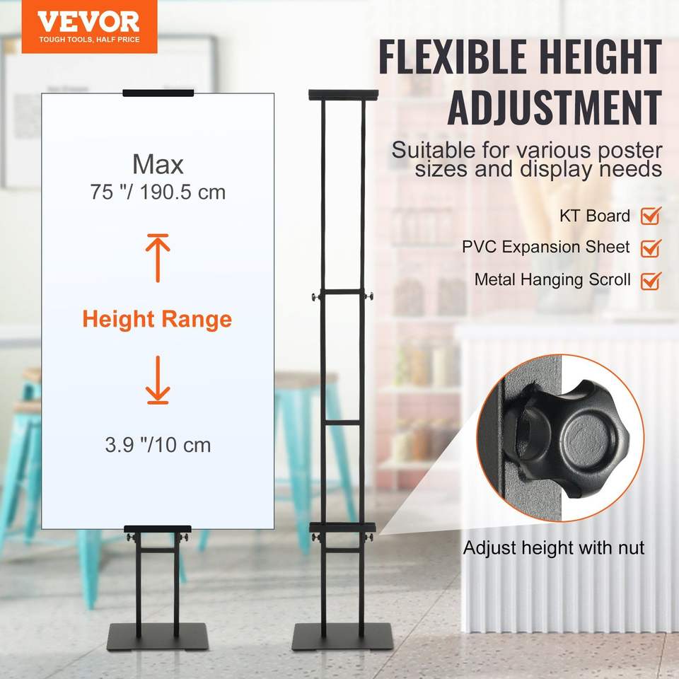 Espositore per Poster Bifacciale Regolabile in Altezza 75 Pollici, Supporto per Insegne da Terra Resistente