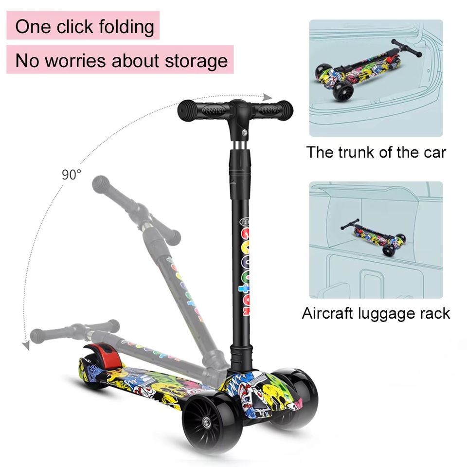 Monopattino a Tre Ruote per Bambini con Altezza Regolabile, Pieghevole, con Illuminazione LED, Bicicletta Senza Pedali, Giocattolo Sportivo