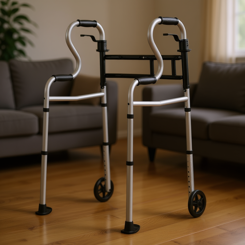 Deambulatore Pieghevole Regolabile in Altezza con Ruote per Uso Domestico