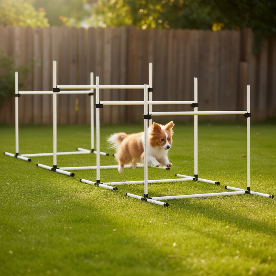 Set di 4 Barre Regolabili in Altezza per Salto, Attrezzatura Bianca per Addestramento Agility Cani, Modello D0100X3HV5J, Forniture per Addestramento Animali Domestici