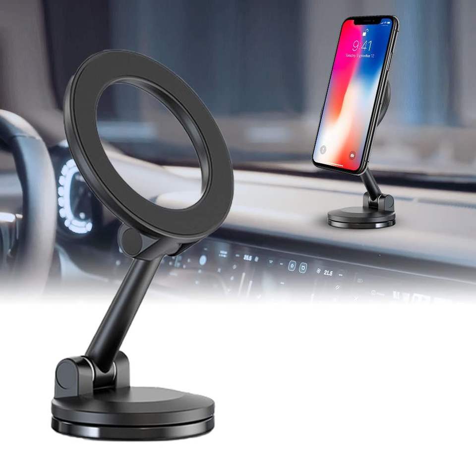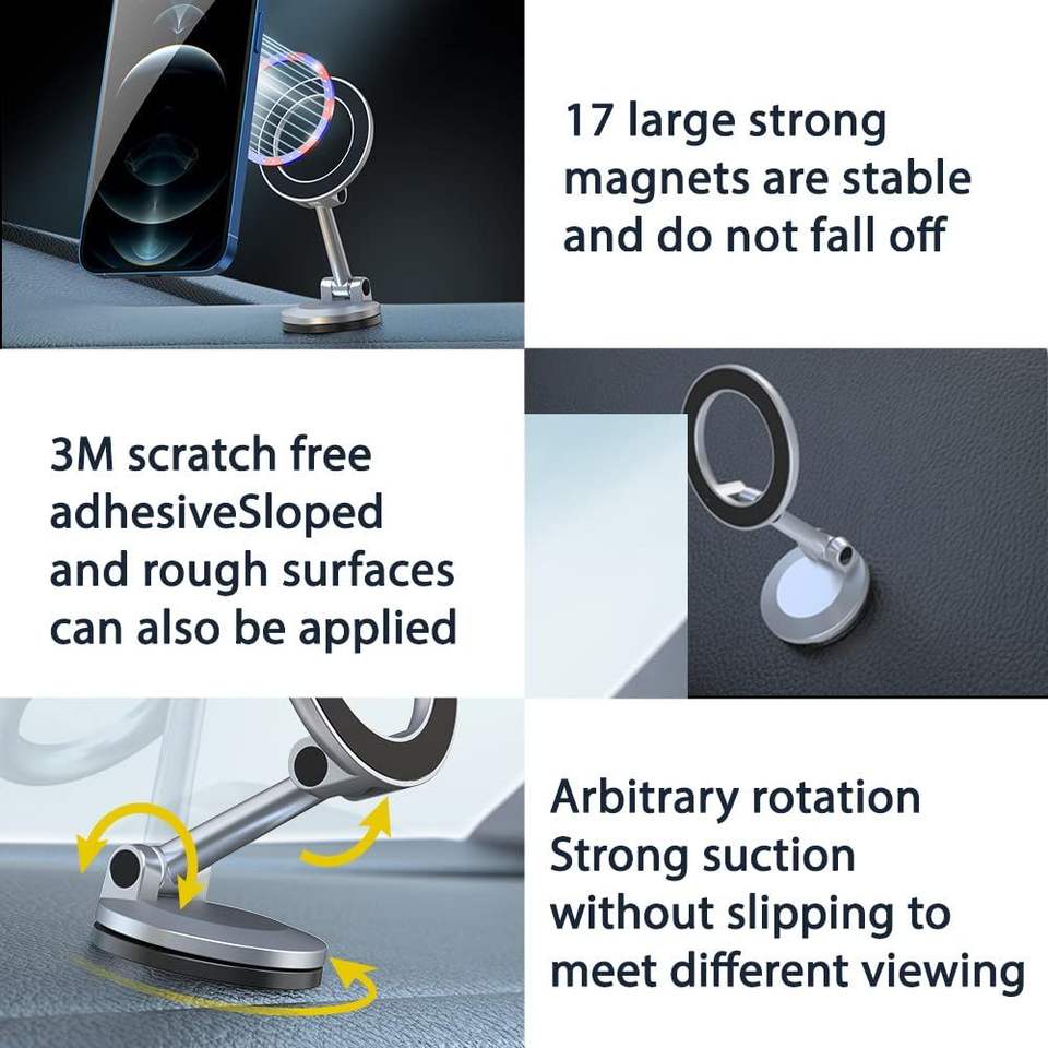 Adjustable Height Magnetic Car Phone Stand with 360° Rotating Base Flexible Dashboard Mount for All Phone Models