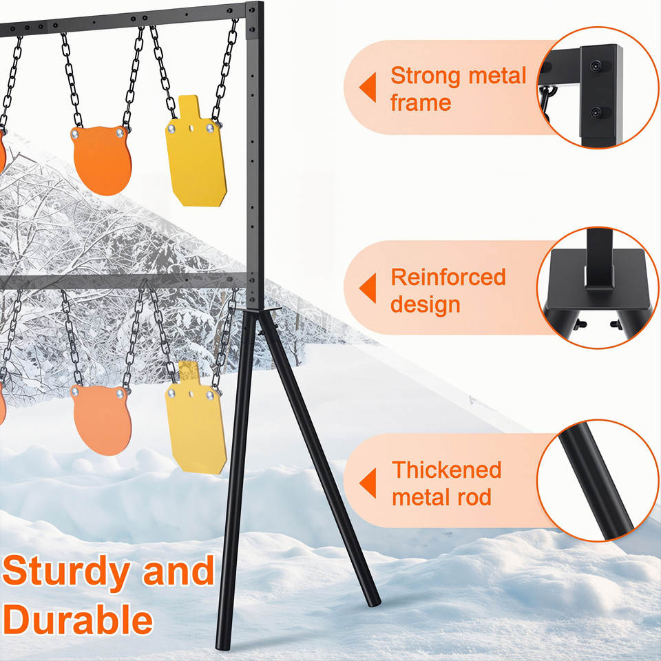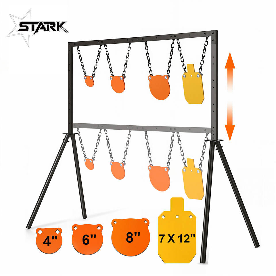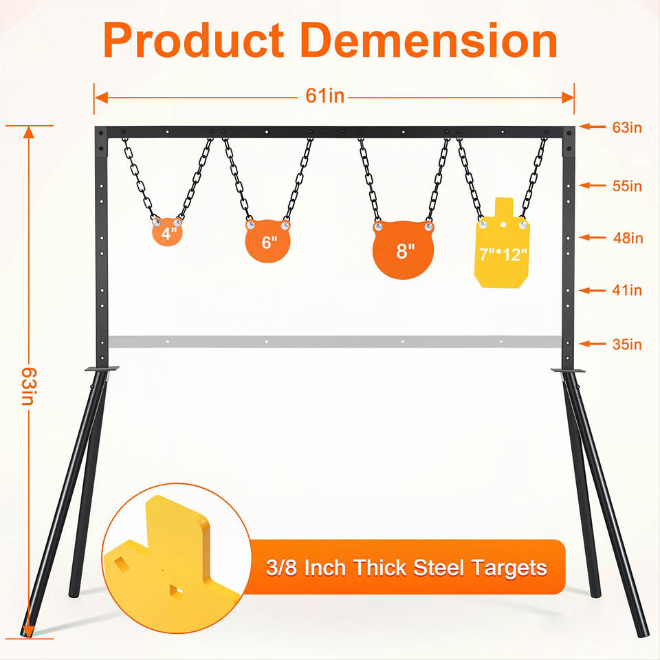 Kit Supporto per Bersagli in Acciaio Regolabile in Altezza - Struttura Completa per Poligono di Tiro all'Aperto con Bersagli Metallici da 4/6/8/7x12 Pollici e Catene