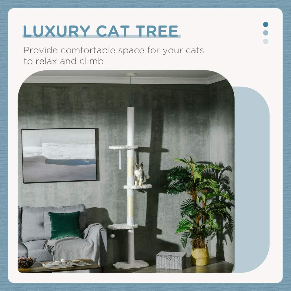 Albero per Gatti Regolabile in Altezza, Bianco, da 8.4 Piedi a Soffitto, con Letto Confortevole