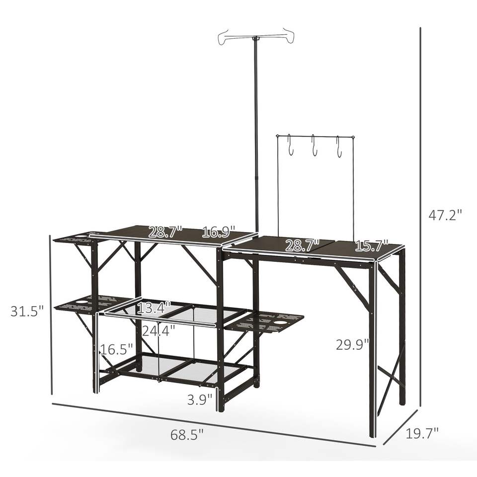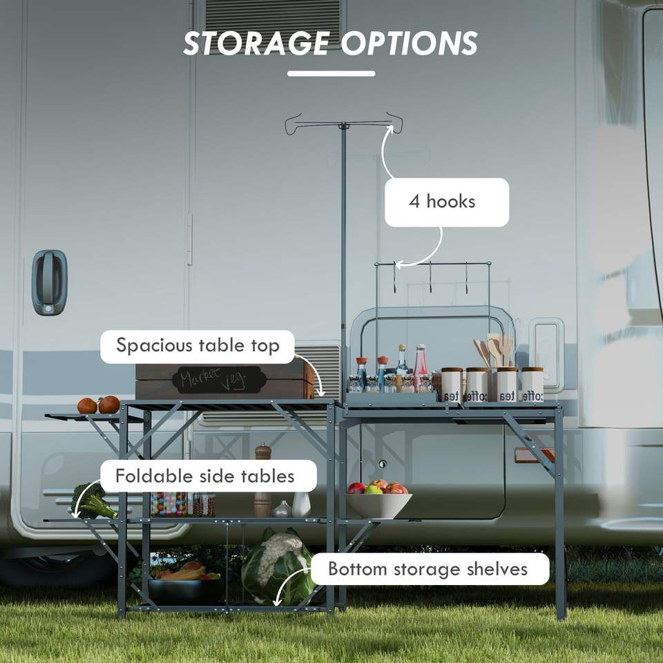 Supporto per Lampada Regolabile, Tavolo da Campeggio Pieghevole con Stazione di Cucina, Pratico Tavolo da Campeggio