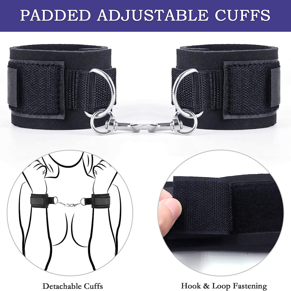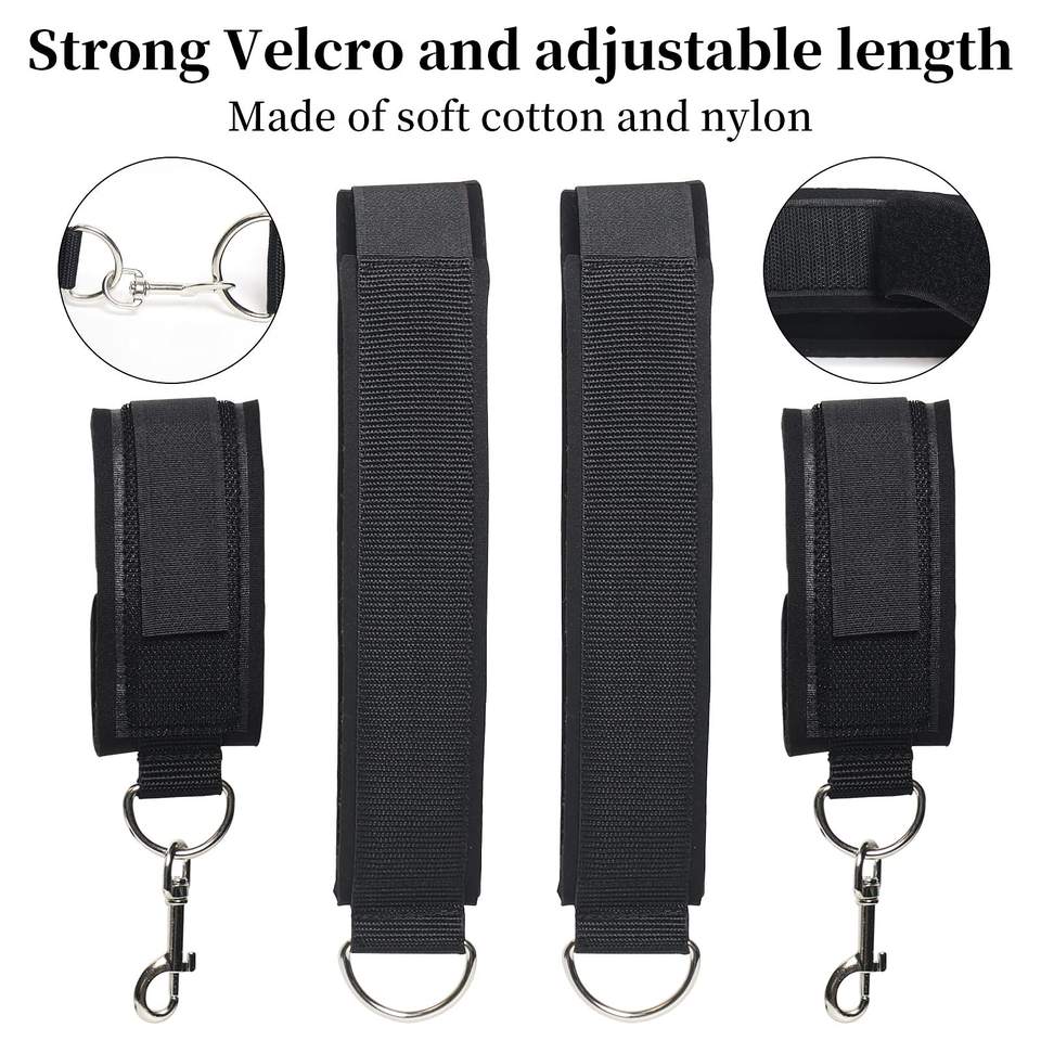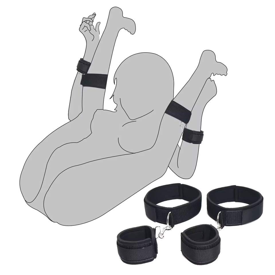 Set di Fissaggio BDSM con Cinghie Regolabili per Gambe e Manette, Polsini e Coscere per Giochi SM per Coppie Principianti