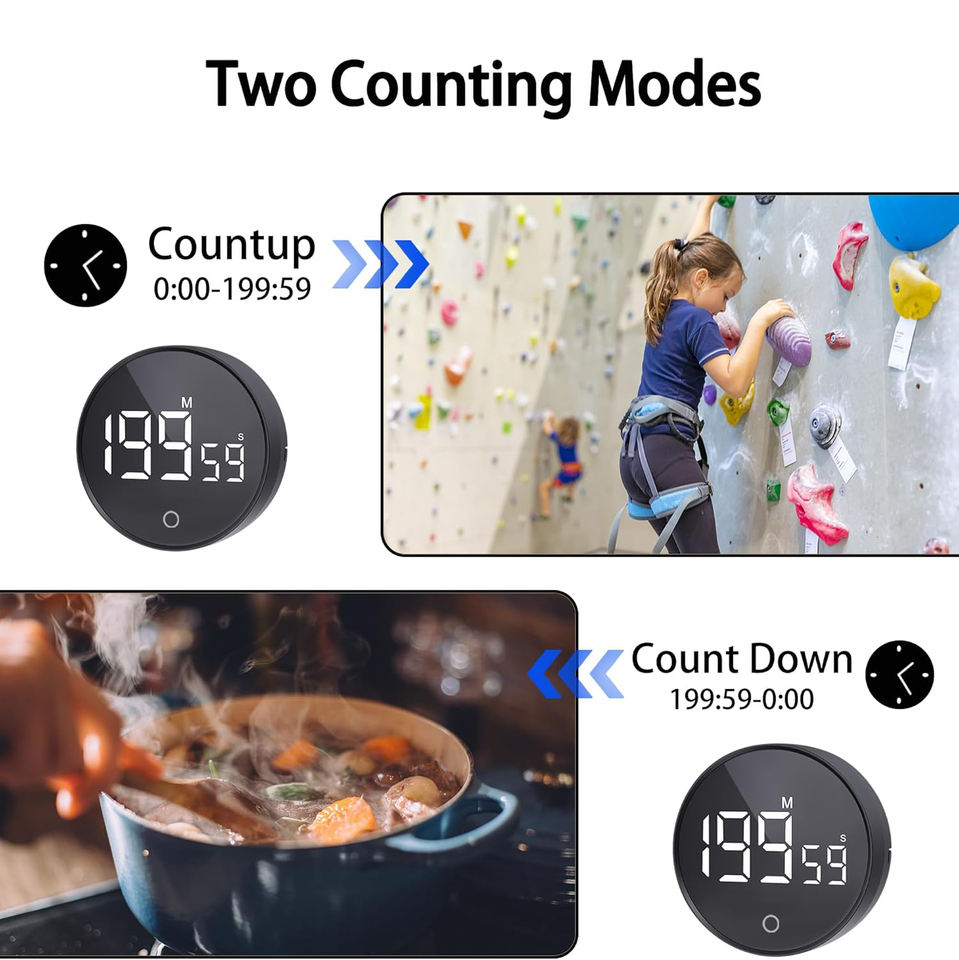 Timer Digitale da Cucina con Display LED Grande, Conto alla Rovescia Magnetico Regolabile fino a 200 Minuti
