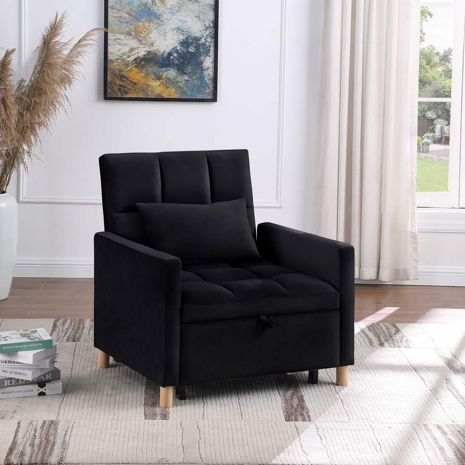 Poltrona Letto Convertibile Multifunzionale Regolabile in Tessuto Morbido per Soggiorno con Cuscino