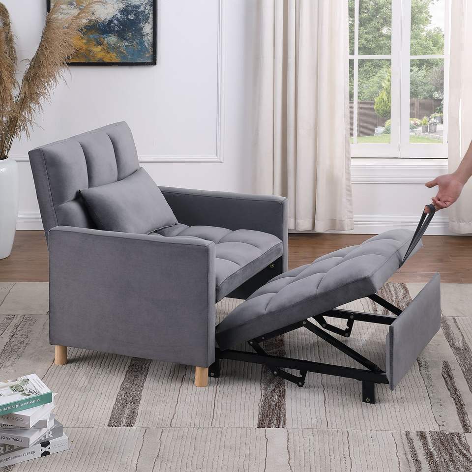 Poltrona Letto Convertibile Multifunzionale Regolabile in Tessuto Morbido per Soggiorno con Cuscino