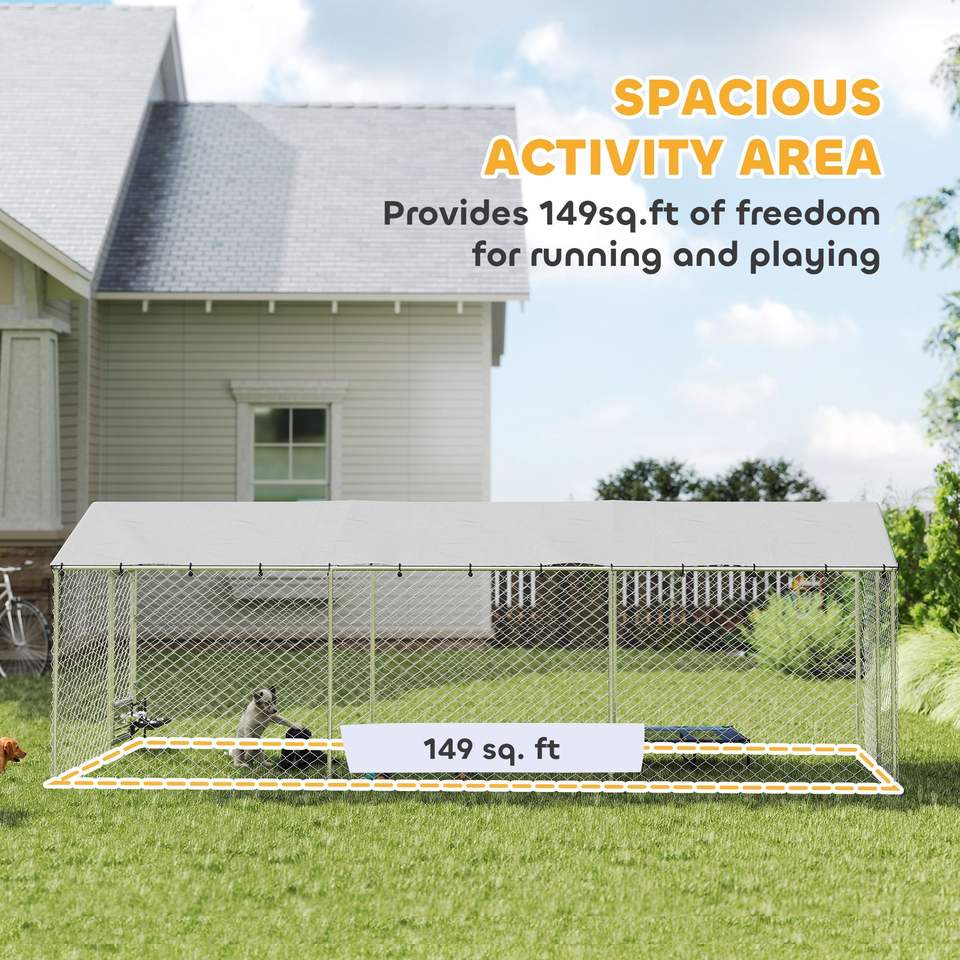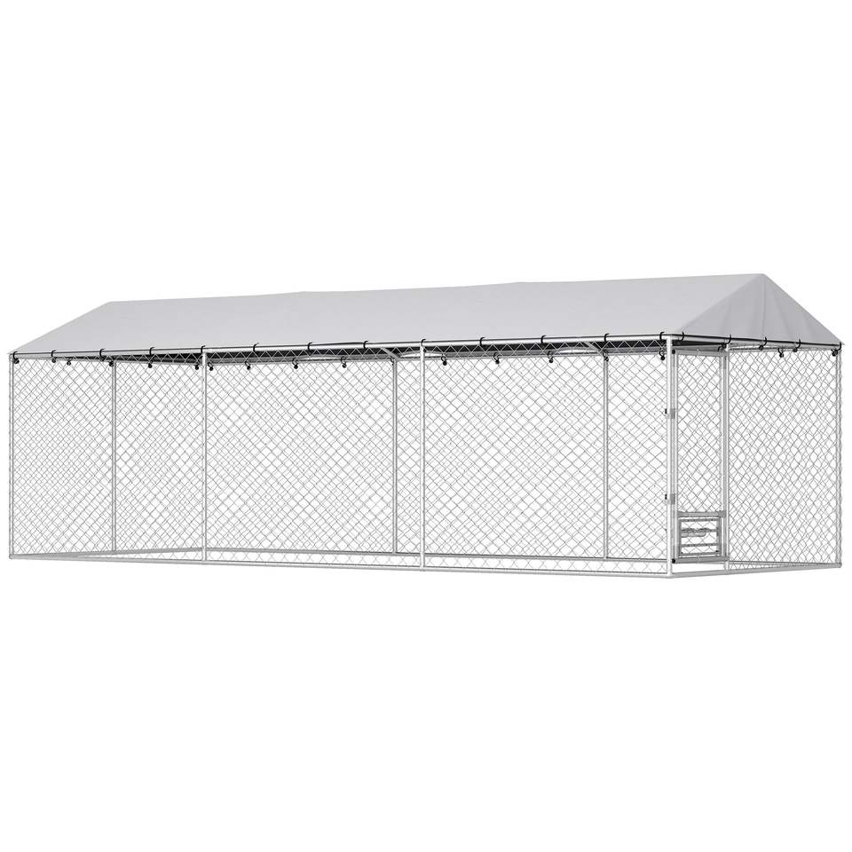 Cuccia per Cani da Esterno Regolabile 6x2.3x2m con Copertura Impermeabile Anti-UV, Porta Bloccabile e Ciotole - Gabbia per Animali Domestici