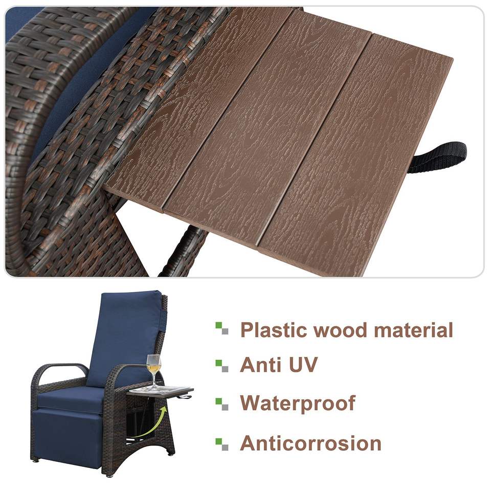 Poltrona Reclinabile da Esterno in Vimini Regolabile con Tavolino Ribaltabile, Divani da Giardino