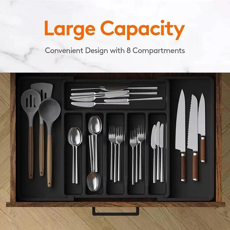 Organizzatore per Cassetti Pieghevole Regolabile in PP, Vassoio Espandibile per Utensili da Cucina, Portaposate Senza BPA