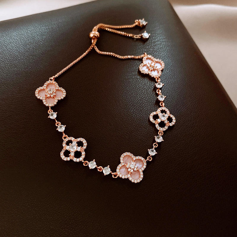 Progetta:Bracciale con trifoglio regolabile di alta qualità con fiore in zirconia cava