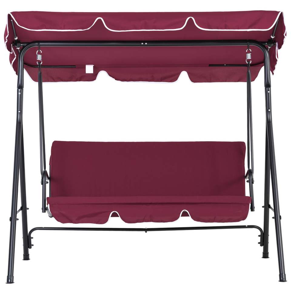 Sedia a Dondolo da Esterno Rossa Regolabile con Tettuccio Inclinabile e Cuscino Rimovibile