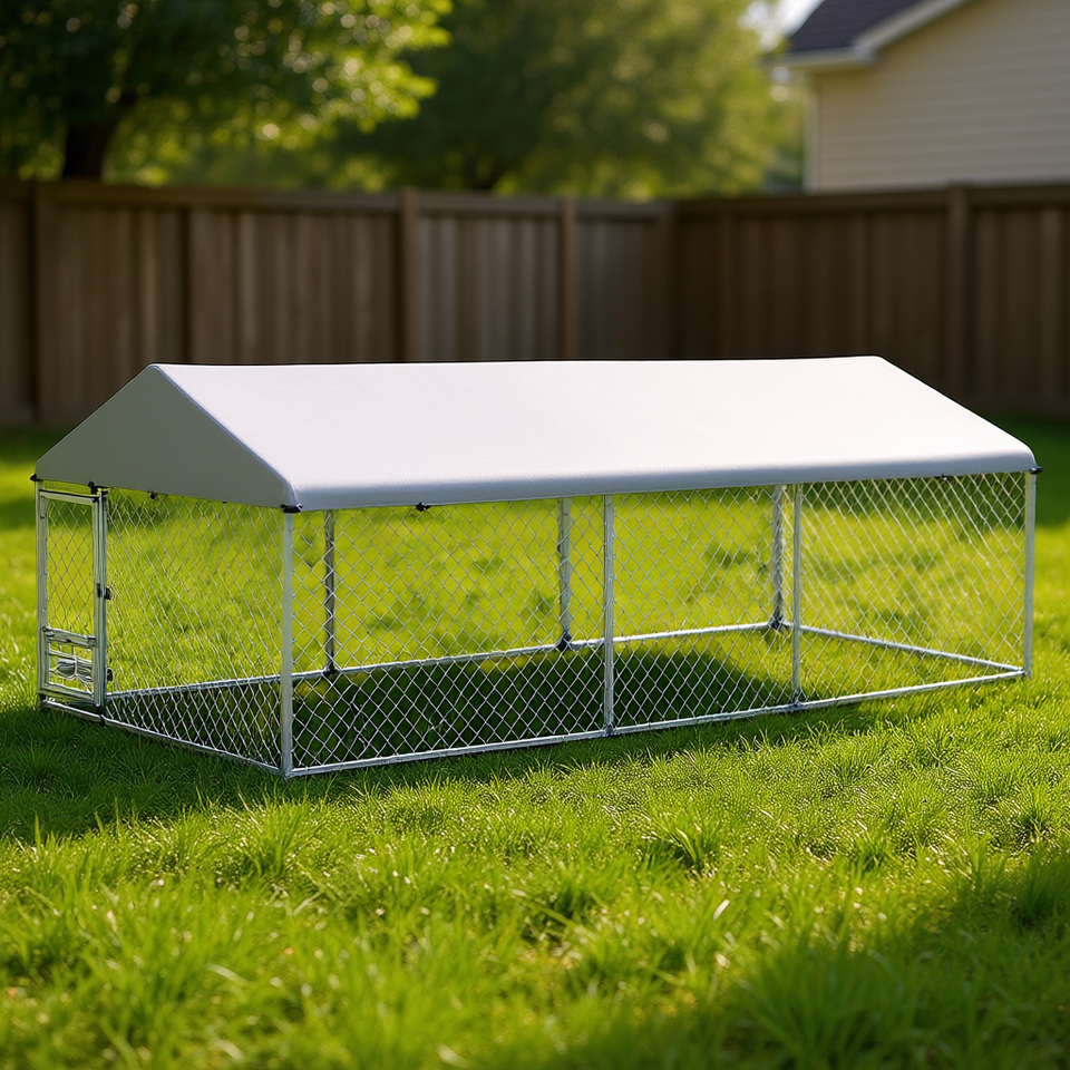 Recinto per cani da esterno regolabile 19,7 x 7,5 x 5,2 m in metallo con serratura e tetto impermeabile per razze di grandi dimensioni
