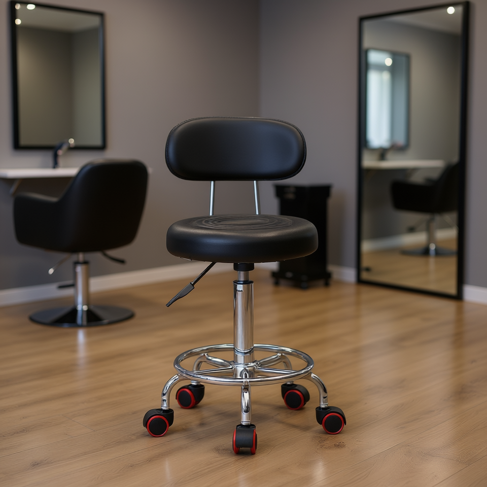 Sgabello da Salone Rotondo Regolabile Nero Linea Contemporanea Arredamento Commerciale