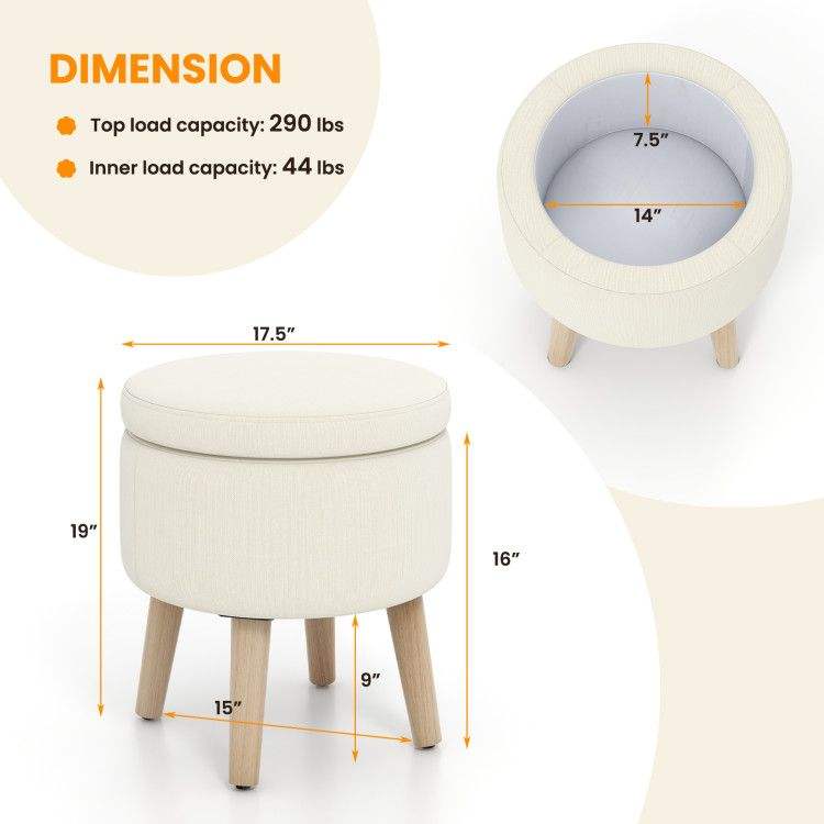 Pouf Rotondo Regolabile con Gambe in Legno di Gomma e Cuscinetti per i Piedi, Sgabelli e Pouf Eleganti